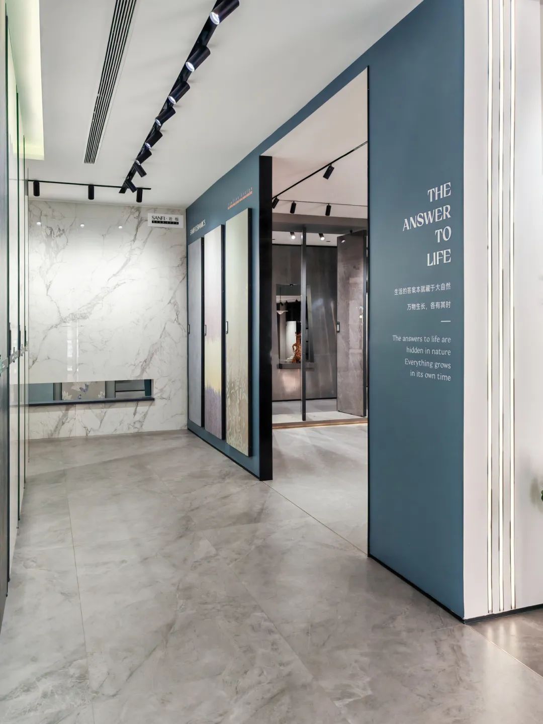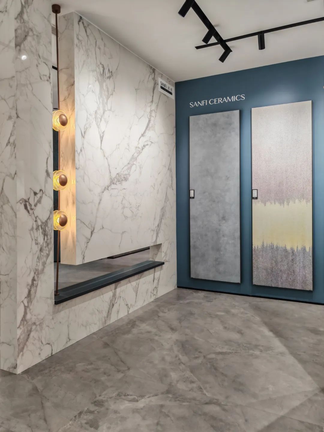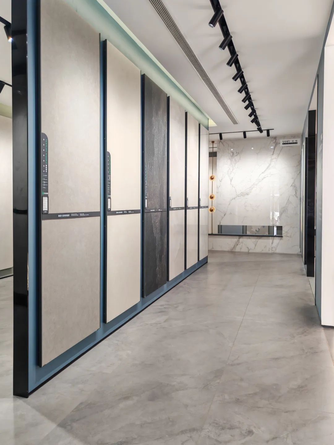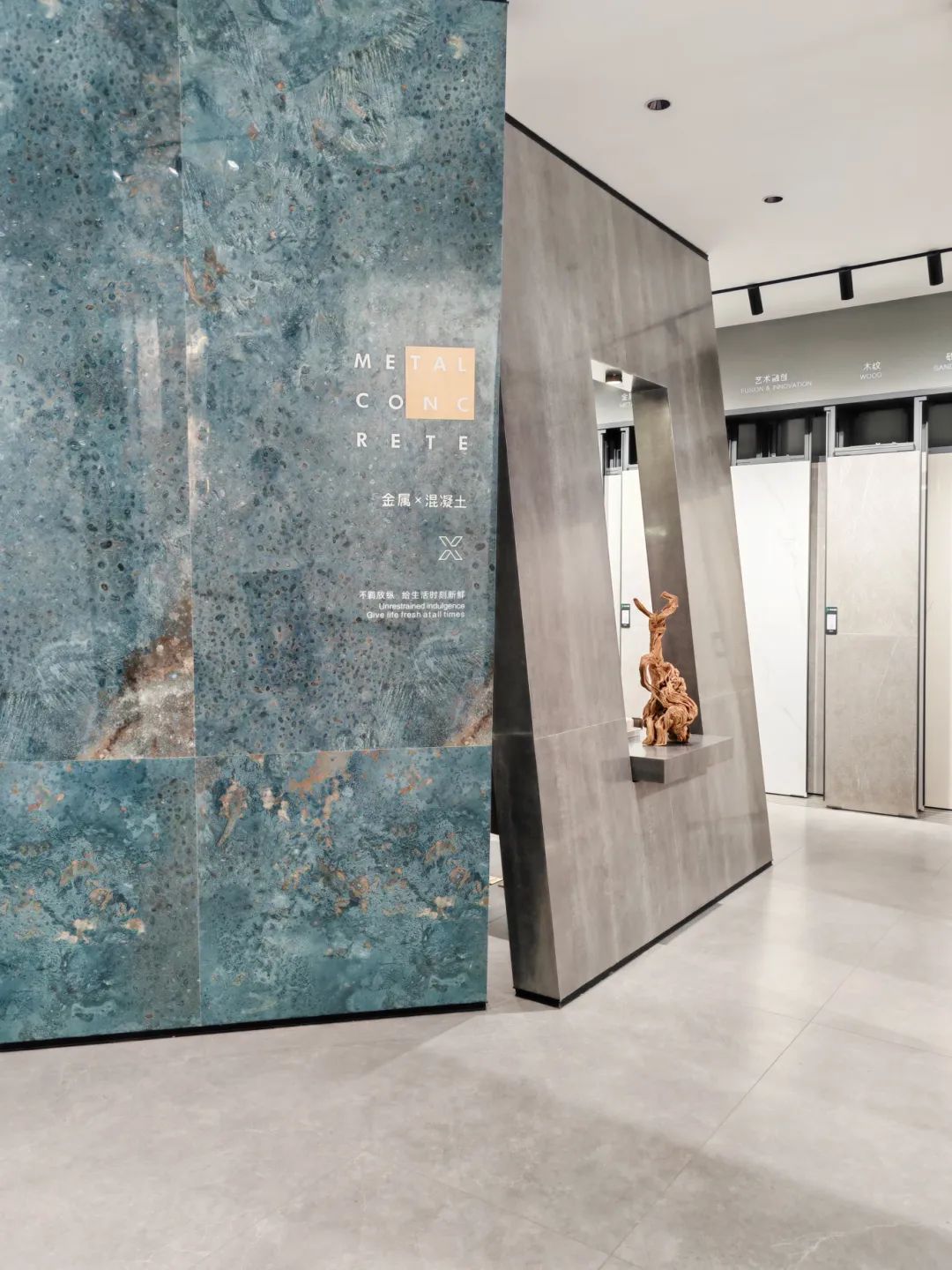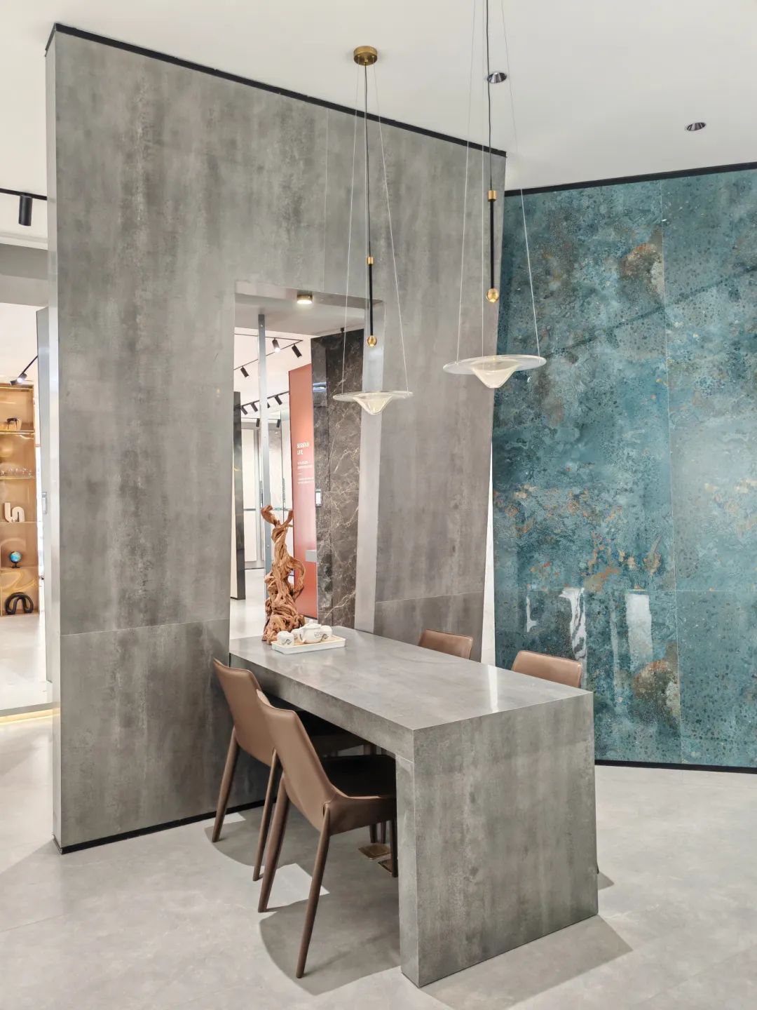 MAX TOPAZ BLUE, combines metal and concrete three-dimensional particle textures, and is embellished with vibrant blue to add a touch of nobility to the exhibition space.