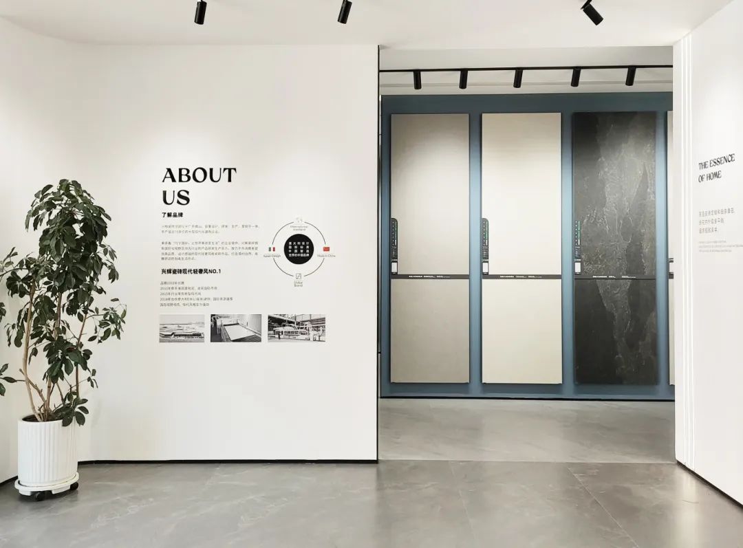 兴辉瓷砖又一轻奢美学馆亮相新疆博乐,摒弃复杂的装饰,新疆博乐美学馆以瓷砖产品本身的质感呈现空间,暗色调设计引入光线点缀,高级而不压抑,散发着无穷的魅力。